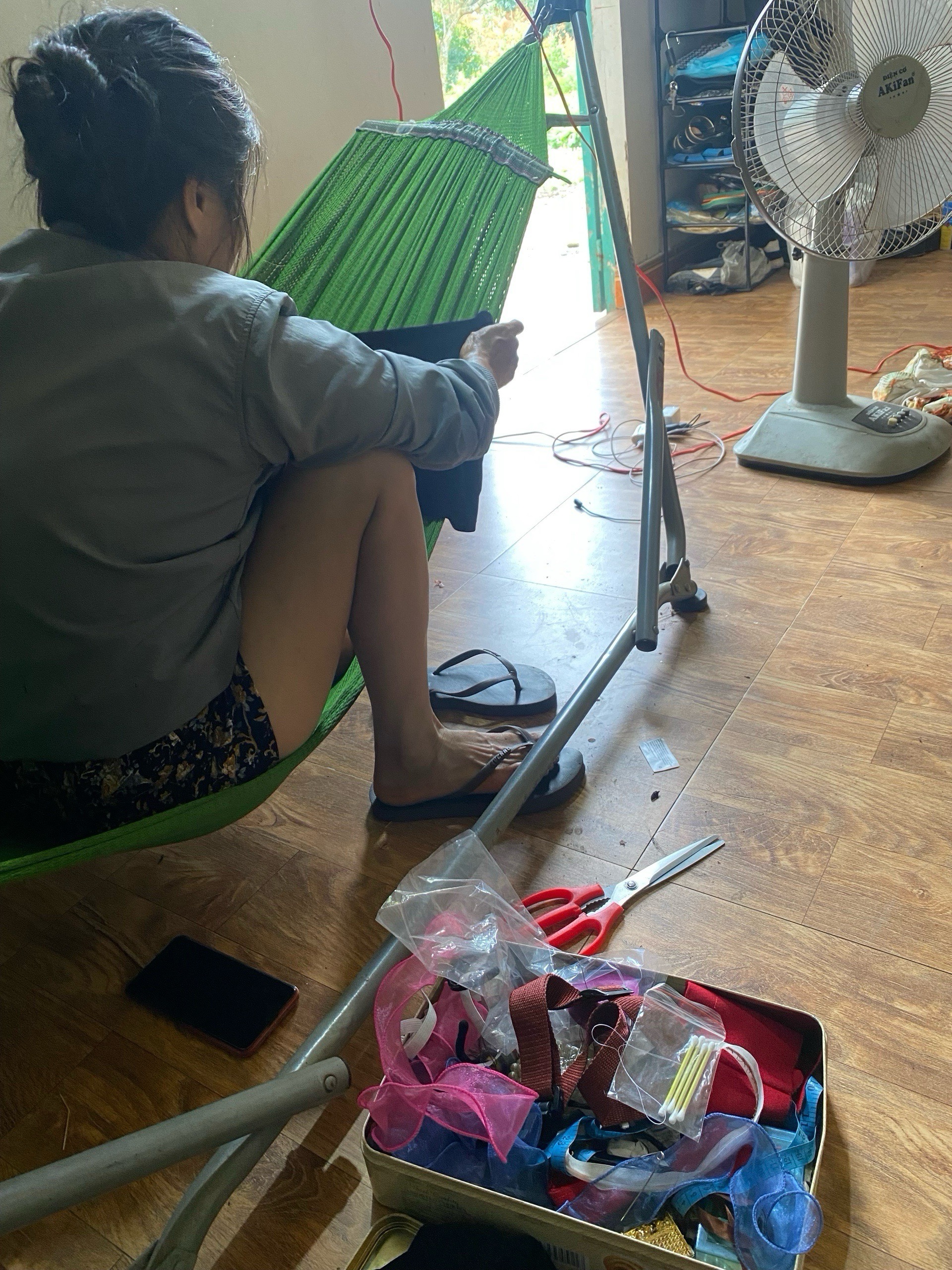 hôm nay trời mưa lạnh, em chuyển thành thợ may nhà…